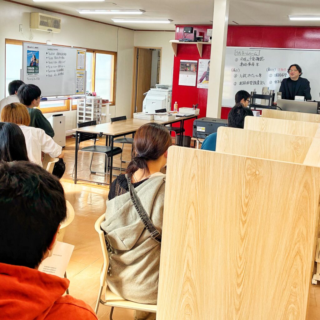 月1回程度、キャンパスでホームルーム(特別活動)を行います。学習に関する連絡のほか、進路選択や受験に関する講話などを実施していきます。